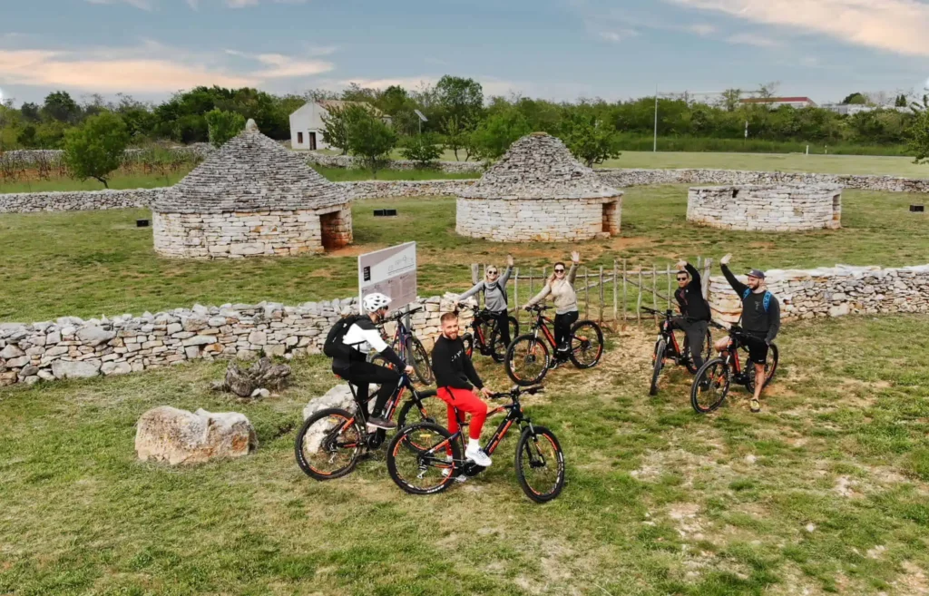 Riding an e-bike along the beautiful trails of the town Vodnjan along stone walls through olive groves and vineyards.On start of the tour we visit old churches. Then we come to the area where are 7 fortresses and visit the largest one. After that we take a break from bikeing with a swim in the sea on a hidden beach. Upon our return we visit old field houses and go to a restaurant to taste Istrian prosciutto and cured meat products.